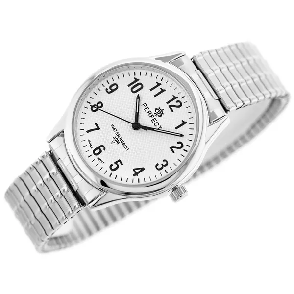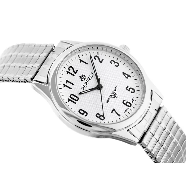 Elegáns, jól átlátható férfi karóra mindennapi viseletre. A japán gyártású kvarc szerkezet pontos időmérést biztosít, a fehér számlap és a fekete számok pedig gyors leolvashatóságot nyújtanak. Az ezüstszínű tok és a fém szíj klasszikus, sokoldalúan kombinálható megjelenést ad.