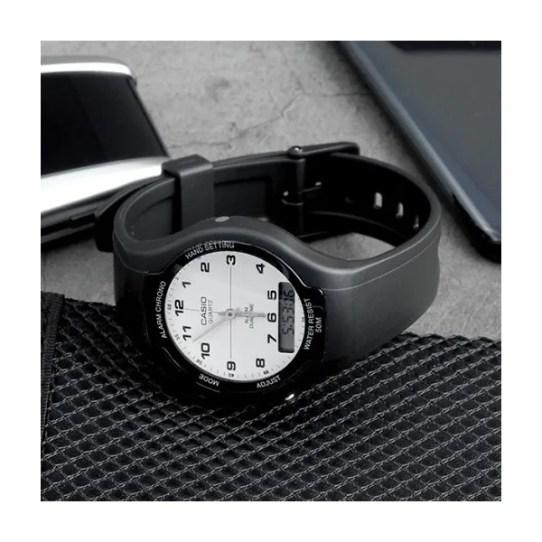 A Casio AW-90H-7BV egy praktikus, retro hangulatú férfi karóra, amely az analóg és digitális kijelzés előnyeit ötvözi. Letisztult megjelenése és jól átlátható számlapja miatt mindennapi viselethez és rendezettebb öltözékhez is remek választás.