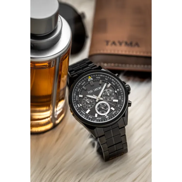 Elegáns fekete kivitelével, acél szíjával és kronográf funkciójával stílusos társ a mindennapokban és alkalmi viselethez is. A megbízható kvarc szerkezet, a dátumkijelzés és az ajándék díszdoboz különösen praktikus választássá teszi.