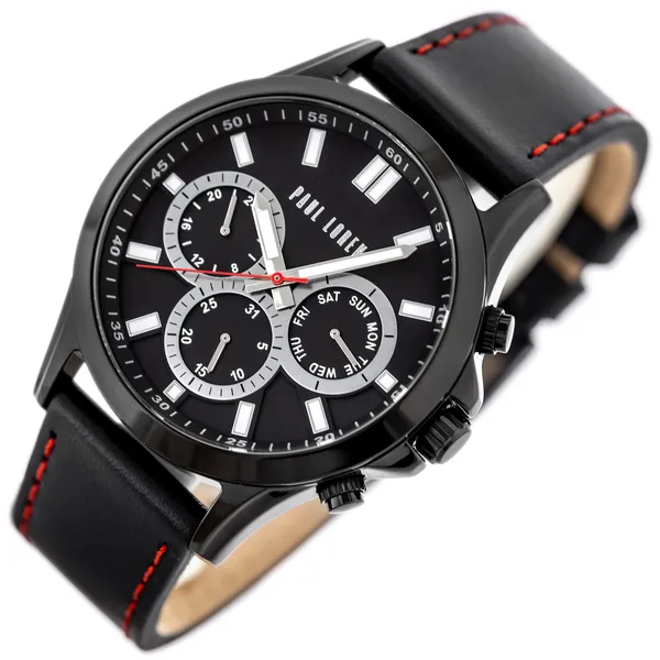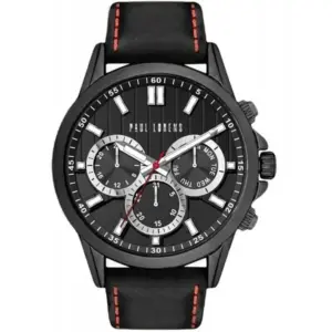 A Paul Lorens PL8071A2-1A3 férfi karóra elegáns és praktikus választás a mindennapokra és alkalmi megjelenéshez egyaránt. A fekete számlap, a fekete tok és a fekete bőrszíj piros varrással férfias, klasszikus összhatást teremt, amely könnyen illeszkedik különböző öltözetekhez.