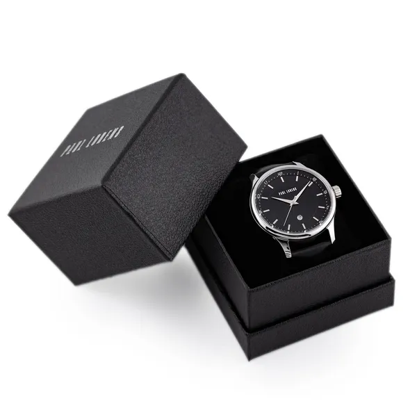 Elegáns, fekete bőrszíjas férfi karóra japán kvarc szerkezettel és dátumkijelzéssel, amely megbízható működést és kényelmes mindennapi viseletet nyújt. A 45 mm-es tok, az ásványi üveg és az ajándék díszdoboz praktikus és stílusos választássá teszi.