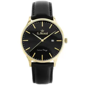 Elegáns megjelenést és kényelmes mindennapi viseletet kínál a fekete bőrszíj, az aranyszínű tok és a pontos japán kvarc szerkezet kombinációjával. A dátumkijelzés, az ásványi üveg és az ajándék díszdoboz praktikus, stílusos választássá teszi.