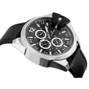 Pontos japán kvarc szerkezete, ásványi üvege és kényelmes fekete bőrszíja praktikus választássá teszi a mindennapokra. A dátum- és 24 órás kijelzés mellett elegáns, fekete-ezüst megjelenése üzleti és alkalmi öltözékhez is jól illik.