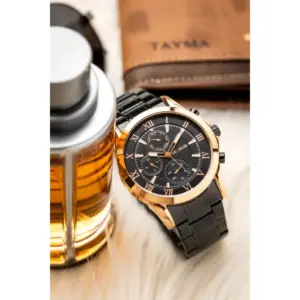 Elegáns, fekete és rózsaarany színvilágú férfi karóra, amely pontos kvarc szerkezettel és praktikus dátumkijelzéssel támogatja a mindennapi használatot. A fém szíj, az ásványi üveg és az ajándék díszdoboz stílusos, megbízható választássá teszi.