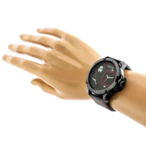 Modern, sportos megjelenésű férfi karóra fekete számlappal és fekete textil szíjjal, kontrasztos piros varrással. A megbízható, japán Miyota kvarc szerkezet pontos időmérést biztosít a mindennapokban.