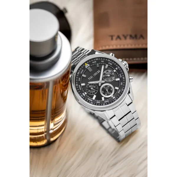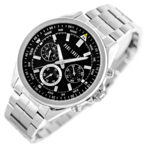 Elegáns, mégis jól használható mindennapi karóra pontos japán kvarc szerkezettel, kronográffal és dátumkijelzéssel. A rozsdamentes acél kivitel, a fekete számlap és az ajándék díszdoboz stílusos és praktikus választássá teszi.
