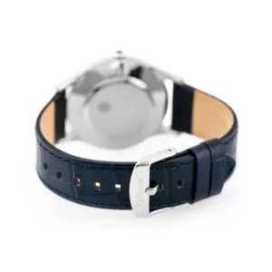 Japán Miyota kvarc szerkezettel és antiallergén IPS bevonattal készült, elegáns férfi karóra. A tengerészkék számlap és a sötétkék bőrszíj könnyen kombinálható üzleti és hétköznapi szettekkel, a WR30 védelem pedig a mindennapi fröccsenéseket gond nélkül kezeli.