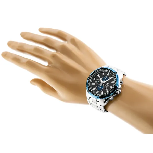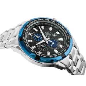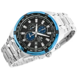 Elegáns, rozsdamentes acél férfi karóra fekete számlappal, amely pontos kvarc szerkezettel és kényelmes, tartós fém szíjjal érkezik. A WR100 vízállóság és a kronográf praktikus társ a mindennapokban, a díszdoboz pedig ajándékozáshoz is tökéletes.