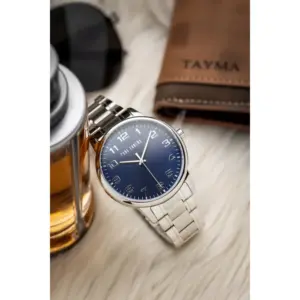 A pontos kvarc szerkezet stabil működést biztosít, a rozsdamentes acél tok és csat pedig tartós, időtálló viseletet nyújt. A sötétkék számlap és az ezüstszínű részletek kifinomult, férfias összhatást teremtenek.