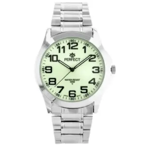 Férfi kvarc karóra zöld fluoreszkáló számlappal, ezüst fém szíj