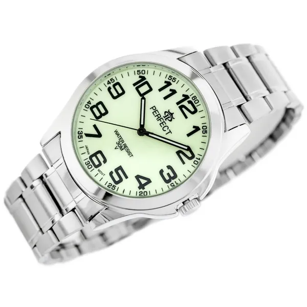A japán Miyota szerkezettel készült karóra megbízható működést és kényelmes mindennapi viselést kínál. A fluoreszkáló zöld számlap sötétben is jobban leolvasható, az ezüstszínű fém szíj pedig elegáns megjelenést ad.