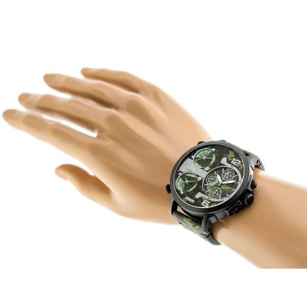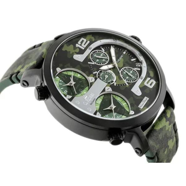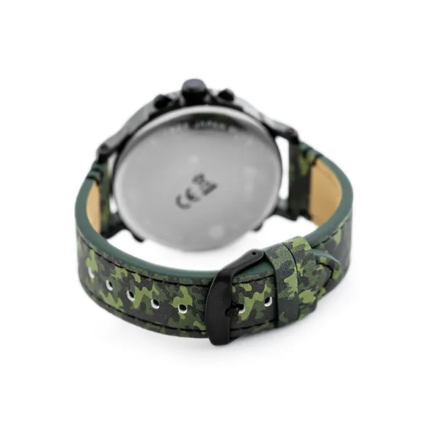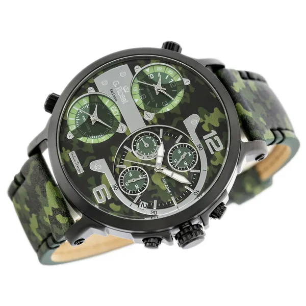Stílusos férfi kvarc karóra kerek fekete tokkal, zöld számlappal és hozzá illő bőrszíjjal. Az antiallergén IPS bevonat kényelmesebb viseletet biztosít, a minerálüveg pedig segít megóvni az órát a mindennapi használat során.