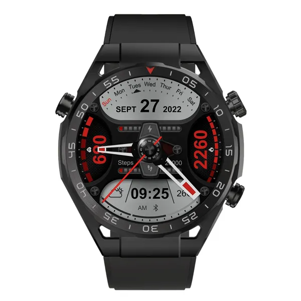 Ez a fekete, kerek számlapos férfi okosóra modern megjelenést és hasznos mindennapi funkciókat kínál egy készülékben. Az 1,39 hüvelykes, teljes érintésvezérlésű TFT kijelző kényelmes kezelést biztosít, a választható óralapokkal pedig könnyen személyre szabható.