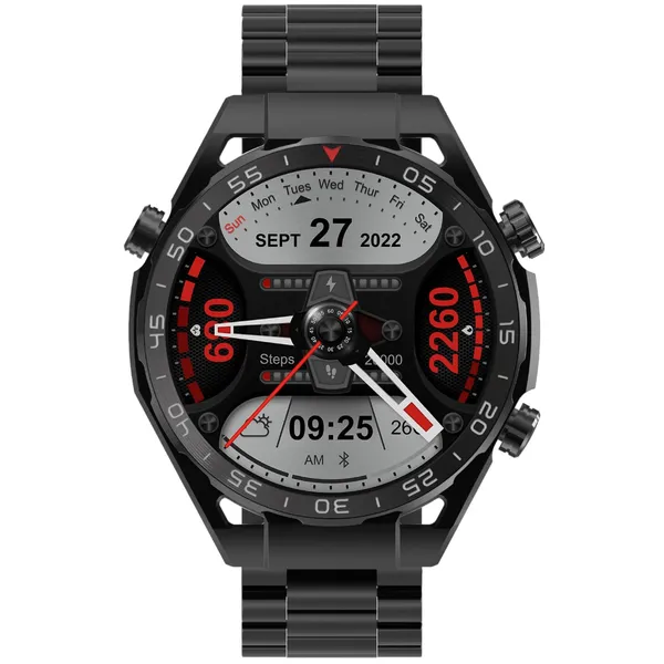 Férfi okosóra 1,39” TFT kijelzővel, fekete, acél szíjjal