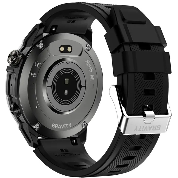 A fémötvözet tok nikkelmentes és hipoallergén, a tartós ásványi üveg pedig segít megóvni a kijelzőt a hétköznapi használat során. A csomagban egy fekete szilikon szíj és egy fekete fémhatású karkötő is található, így az óra sportosabb és elegánsabb viselethez is könnyen igazítható.