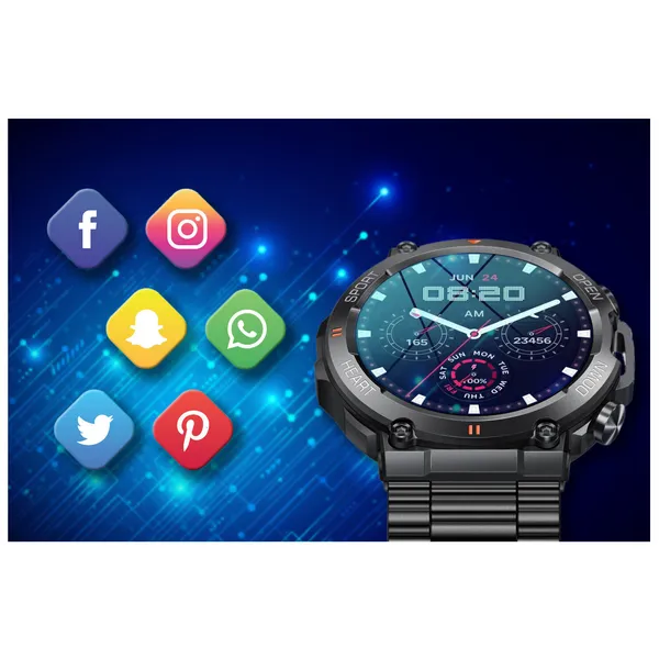 Ez a férfi okosóra praktikus választás mindennapi használatra, sporthoz és munkához egyaránt. A nagy, teljesen kerek, 1,39 hüvelykes TFT IPS kijelző kényelmesen áttekinthető, a Bluetooth hívás funkcióval pedig közvetlenül az óráról fogadhat és indíthat hívásokat. A beépített mikrofon és hangszóró még kényelmesebbé teszi a használatot.