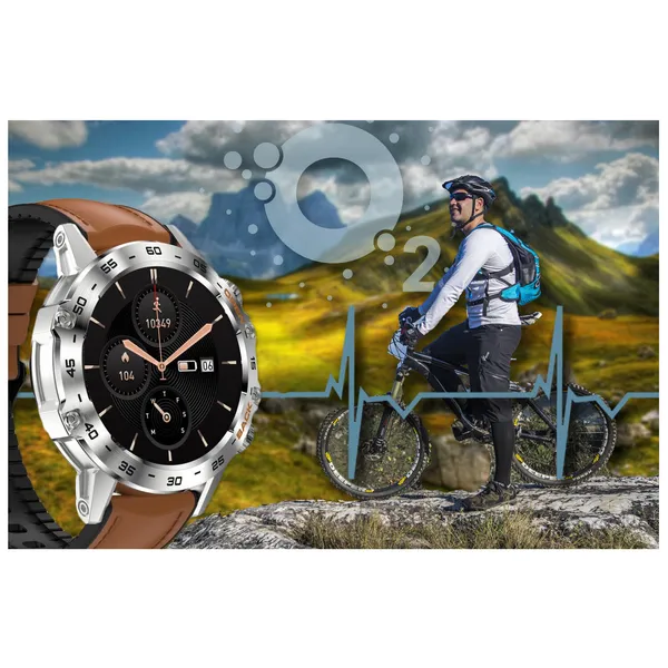 Ez a férfi okosóra elegáns, mégis sportos választás a mindennapokra. Az 1,39 hüvelykes, teljes érintésvezérlésű IPS kijelző 360×360 pixeles felbontással éles és jól áttekinthető képet ad. A Bluetooth-hívás funkciónak köszönhetően a beépített mikrofon és hangszóró segítségével közvetlenül az óráról is fogadhat és indíthat hívásokat.