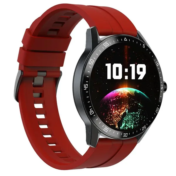 Férfi okosóra, fekete tok, piros szíj, IP68, pulzusmérő