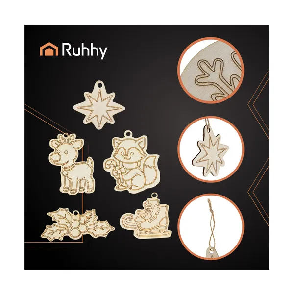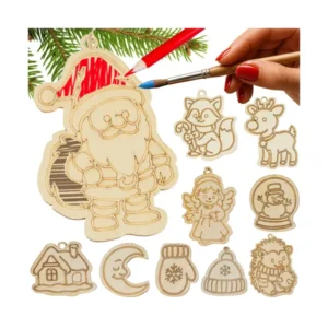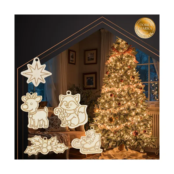 Adj természetes, kézzel készített hangulatot az ünnepi dekorációhoz! Ez a 24 darabos, festhető fa karácsonyfadísz szett kreatív időtöltés a családnak: dekorálhatod festéssel, filccel, csillámmal vagy saját mintákkal. Minden díszen előre kifúrt akasztólyuk van, és a csomagban található zsinórral azonnal felakasztható a fára, koszorúra, girlandra vagy az ablakba.