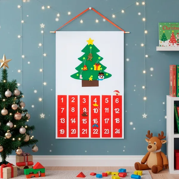 Teremts meghitt adventi hangulatot ezzel a nagyméretű, színes, filc adveneti naptárral! A 24 zsebbe apró meglepetések, üzenetek vagy édességek rejthetők, így a várakozás minden napja külön élménnyé válik.