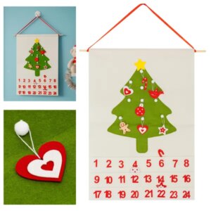 Hangulatos filc adventi naptár 24 zsebbel, amely segít a gyerekeknek és felnőtteknek is örömteli visszaszámolást teremteni karácsonyig. A fa rúd és a szalag megkönnyíti a felakasztást, a mellékelt 10 akasztható filc dísz pedig extra ünnepi dekorációt ad.