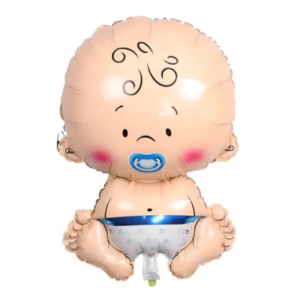 • 1 db baba alakú fólia léggömb – aranyos pelenkás kisfiú mintával