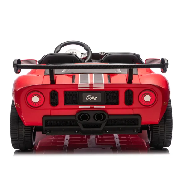 A piros Ford GT 24V elektromos kisautó tökéletes választás testvéreknek vagy közös játékhoz barátokkal. A legendás sportautó ihlette forma, a dinamikus vonalak és a sportos csíkok igazán látványos megjelenést adnak ennek a 2 személyes modellnek.
