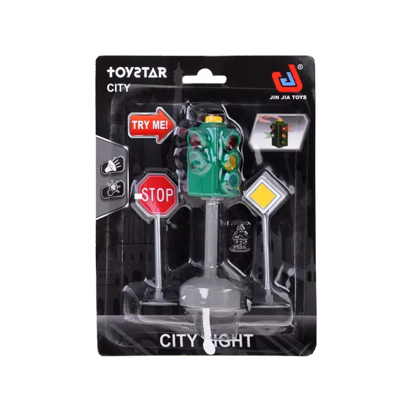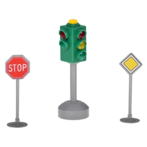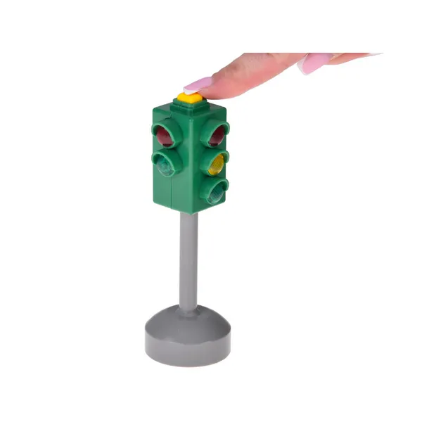Élethű fény- és hanghatású jelzőlámpa STOP és Elsőbbségadás táblával, amely játszva tanítja a gyerekeket a közlekedési szabályokra, és feldobja bármely autópálya- vagy városmakett játékot. Kis mérete miatt bárhová könnyen magukkal vihetik, így a kreatív szerepjáték sosem marad el.