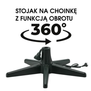 A csendes, 4 W-os motor 360°-ban forgatja a fenyőt, így minden dísz jól látható. A masszív ABS+fém talp biztonságosan tartja a 2,4 m-es fát és akár 115 W-nyi fényfüzért is ellát árammal.