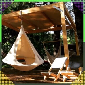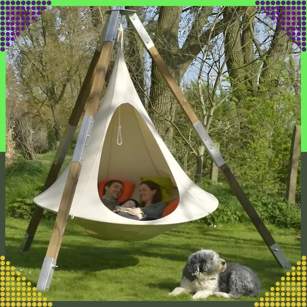 Pillanatok alatt felszerelhető kokónhinta, amely 150 kg-os teherbírásával kényelmes búvóhelyet nyújt beltéren és kertben egyaránt. Légáteresztő, időjárásálló anyaga és ringatózó formája gondoskodik a hűs, stresszoldó pihenésről.