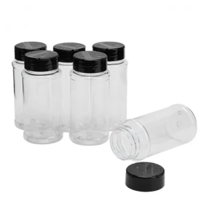 • 6 átlátszó üveg csavaros tetővel, kb. 80 ml kapacitással.