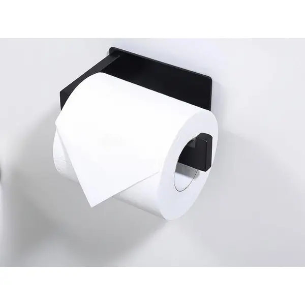 Fúrásmentes matt fekete WC-papírtartó – acél, modern