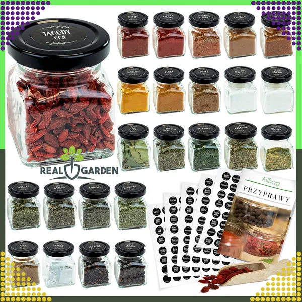 Fűszertartó üveg készlet 24 db 120 ml, 200 matrica, merőkanál