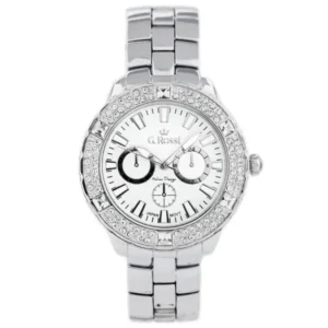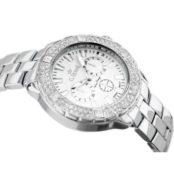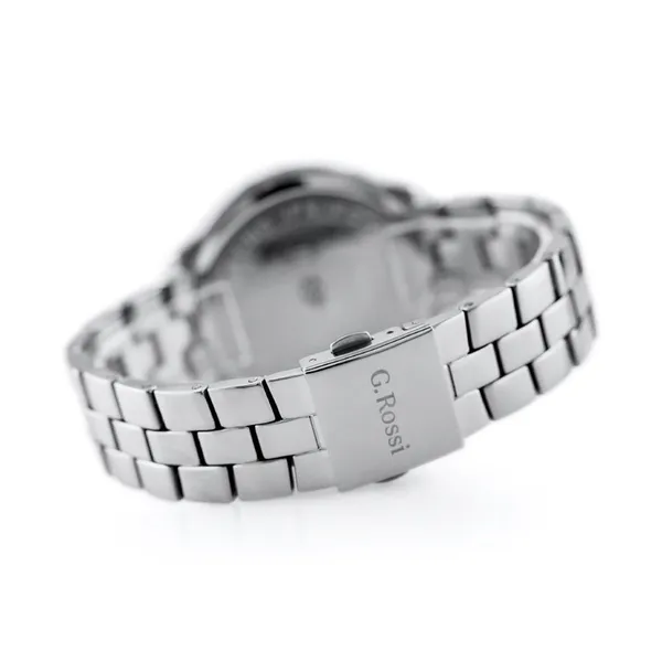 Az elegáns G. Rossi Core női karóra stílusos kiegészítője mindennapi és alkalmi viseletnek. Japán MIYOTA Citizen kvarc szerkezete pontos időmérést garantál, míg a WR30 vízállóság gondtalan kézmosást és esőállóságot biztosít. A csillogó cirkóniákkal ékesített ezüstszínű tok és a polírozott fémszíj antiallergén IPG bevonatot kapott, így érzékeny bőrön is viselhető.