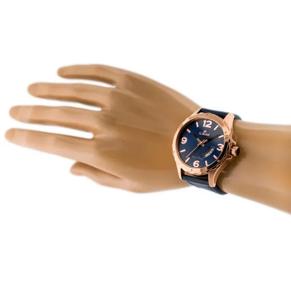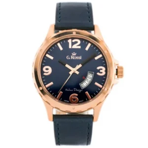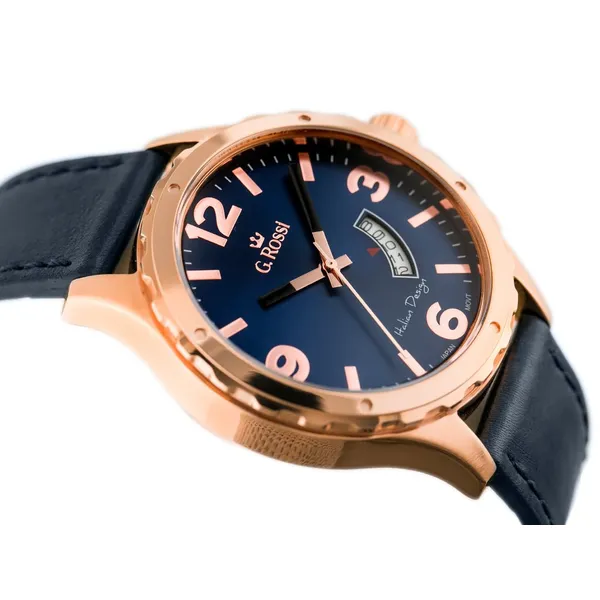 G. Rossi férfi karóra Miyota kvarc kék számlap rosegold tok bőr szíj dátum