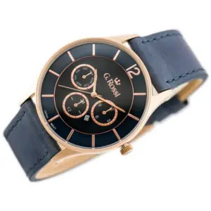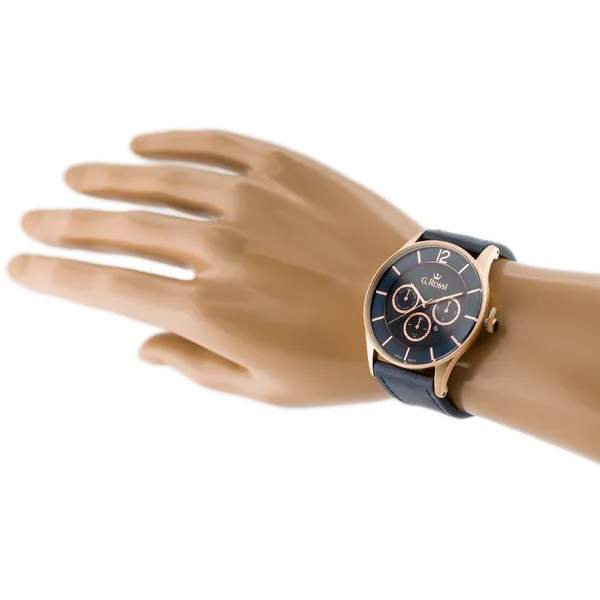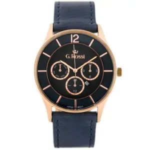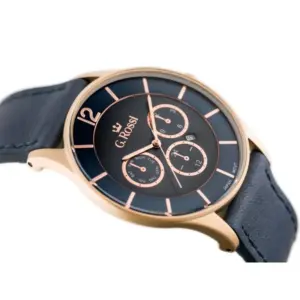 G. Rossi férfi kvarc karóra, kék számlap, bőrszíj, rózsaarany tok