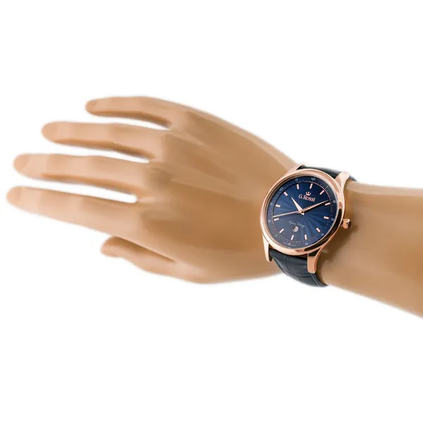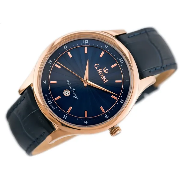 G. Rossi férfi óra 10212A2, kék bőrszíj, rosegold tok, dátumkijelzés