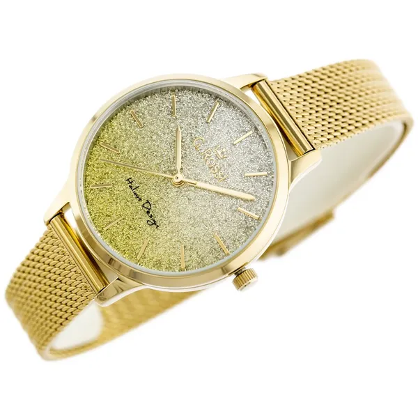 Elegáns, nőies megjelenésű G. Rossi karóra aranyszínű kivitelben, csillogó arany számlappal és kényelmes fém szíjjal. A megbízható Miyota Citizen kvarc szerkezet Japánban készült, így pontos időmérést és hosszú távú használatot biztosít. Az antiallergén IPG bevonat hozzájárul a tartóssághoz és a kényelmes viselethez a mindennapokban.
