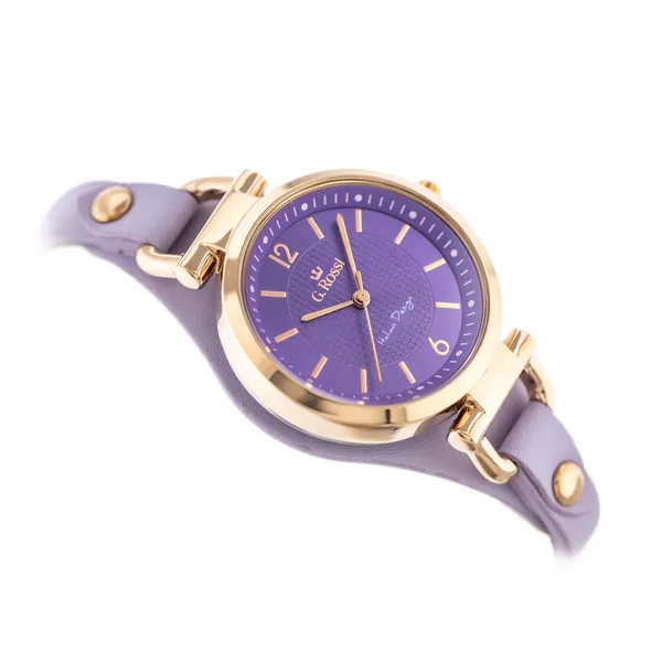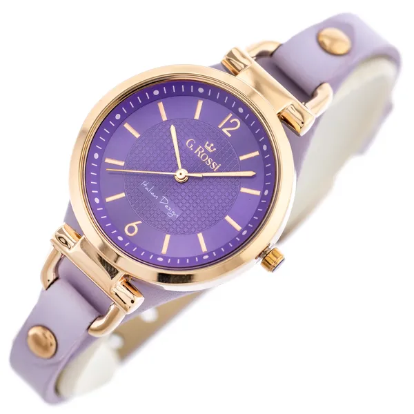 G. Rossi női кварc karóra lila bőrszíjjal, rózsaarany tokban