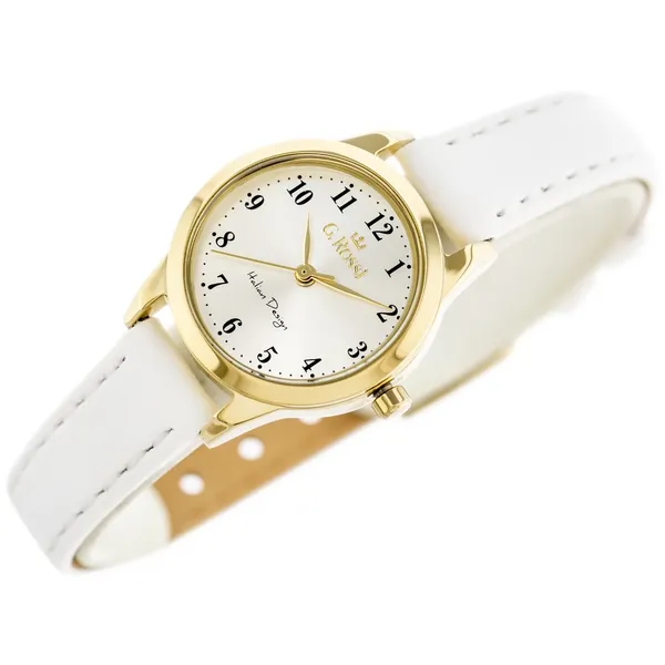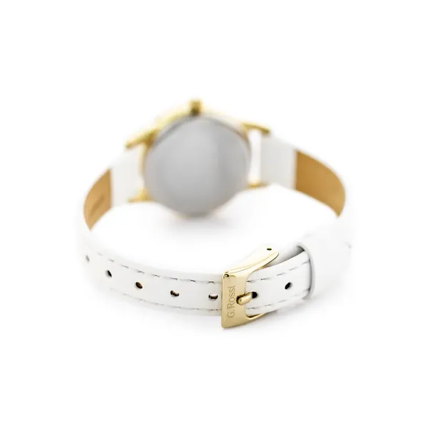 G. Rossi női karóra 26×33 mm, arany tok, fehér bőr szíj, ezüst számlap