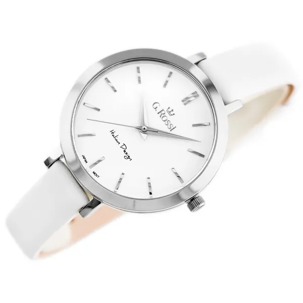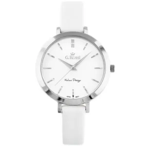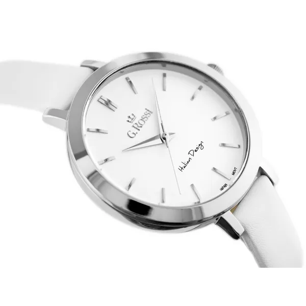 G. Rossi női karóra 38 mm, fehér számlap, fehér bőr szíj, WR30