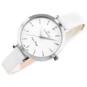 Pontos japán kvarc szerkezet és bőrbarát IPS bevonat gondoskodik a kényelmes, irritációmentes viseletről. A fehér valódi bőrszíj kifinomult megjelenést nyújt, az ajándék díszdoboz pedig azonnal ajándékká varázsolja.
