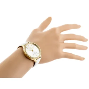 Az elegáns, arany tokos női karóra japán Miyota szerkezete megbízható pontosságot kínál, míg az ezüst számlap és a karcálló ásványi üveg stílust és tartósságot biztosít a mindennapokra.