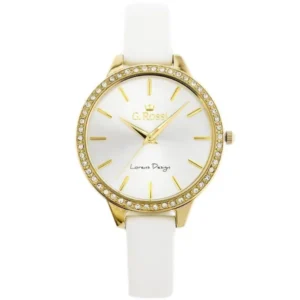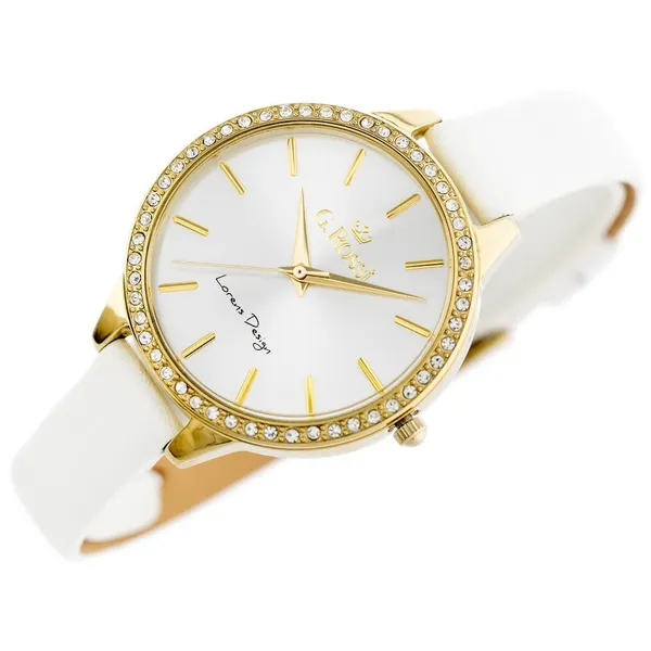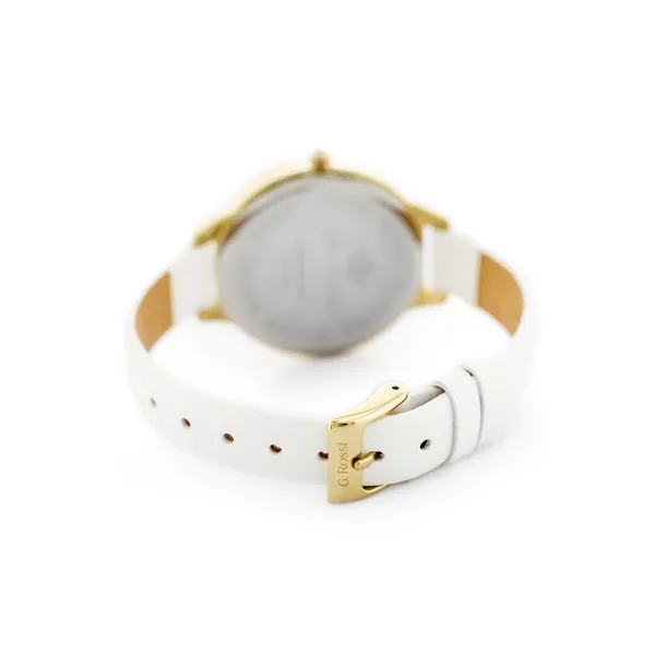 G. Rossi női kvarc karóra 36 mm arany tok, ezüst számlap, fehér bőr szíj