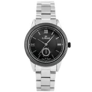 G. Rossi női kvarc karóra, fekete számlap, ezüst fém szíj