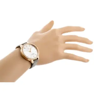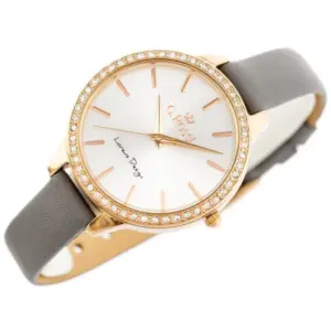 Elegáns, könnyen kombinálható női karóra megbízható japán kvarc szerkezettel, kényelmes szürke bőrszíjjal és antiallergén bevonattal. Az ezüst számlap és a rózsaarany színű tok kifinomult megjelenést ad a mindennapokra és alkalmakra is.
