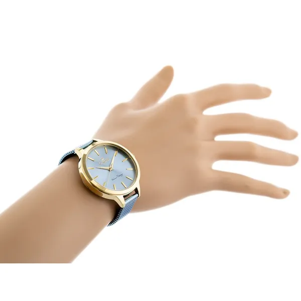 • Világoskék számlap arany színű indexekkel