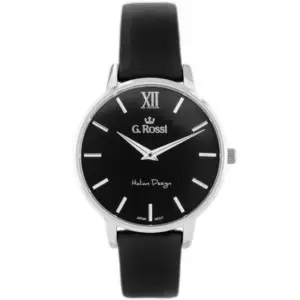 G. Rossi női kvarcóra fekete bőrszíjjal, fekete számlappal