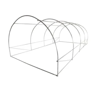 A 6×3×2 m-es, 4 szegmenses kerti fóliasátor váz masszív, mindkét oldalán horganyzott acélcsövekből készült, hogy ellenálljon az időjárás viszontagságainak és stabil tartást biztosítson a fóliának.