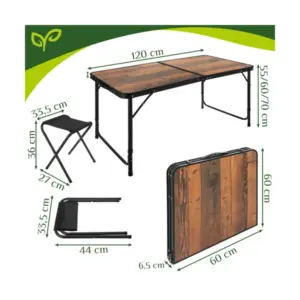 • Típus: összecsukható kemping szett, asztal + 4 szék